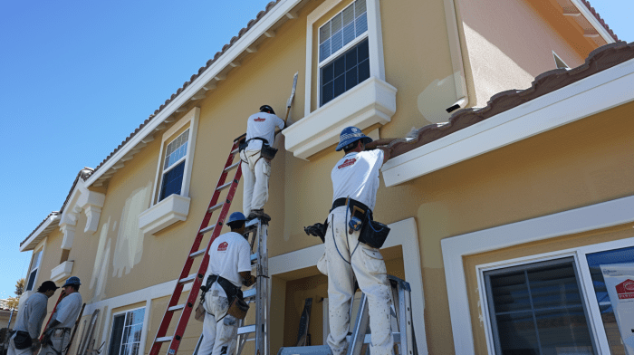 - Surface Preparation: Before painting the exterior of a house, the painters will clean and prep the surface, which may involve power washing, scraping, and sanding.